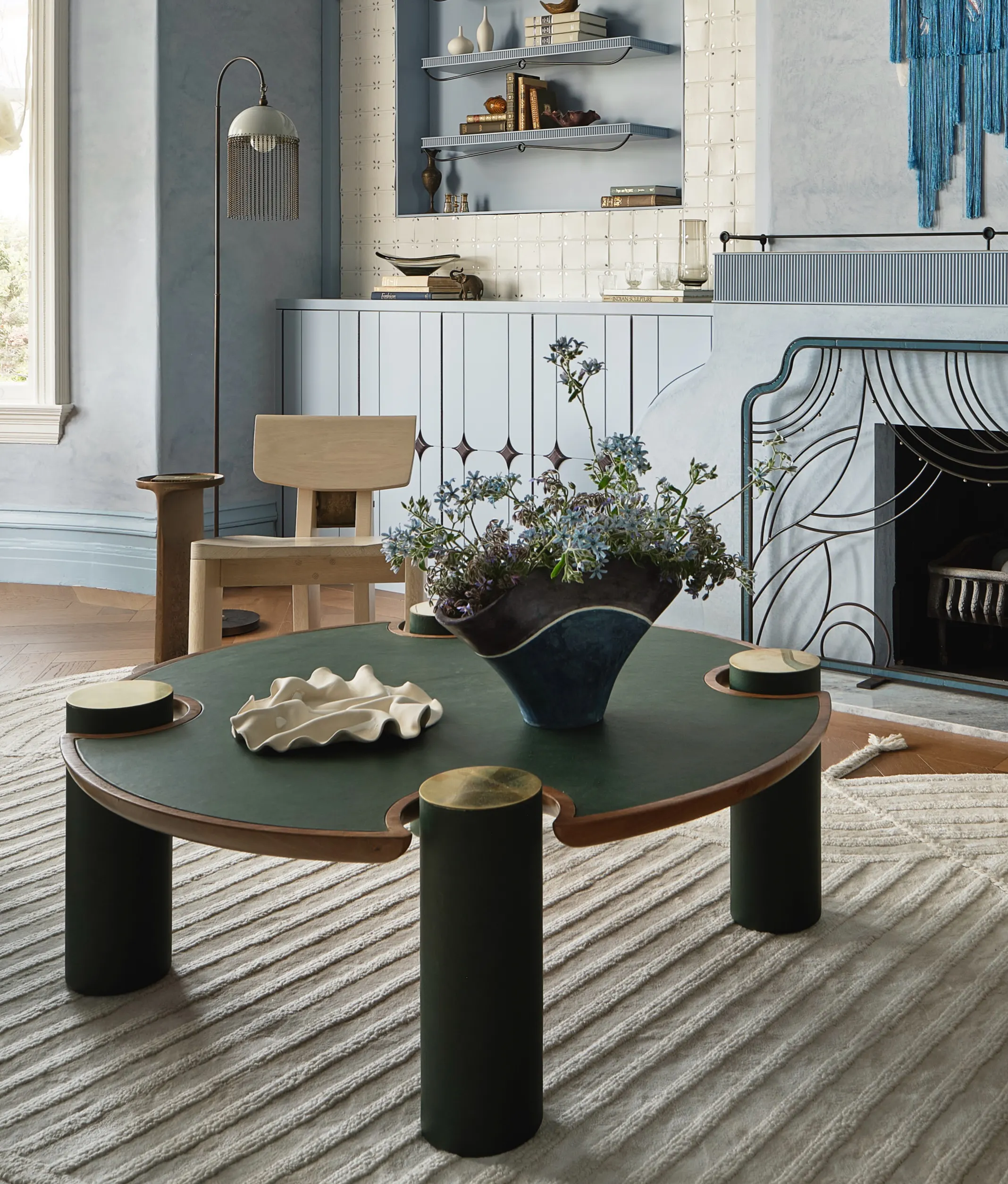 The bespoke furniture reflects a close collaboration between Sindhu and the artists and makers who brought each design to life through hand painting, carving, and leatherwork. Crafted using time-honored techniques and defined by clean, modern silhouettes, the pieces are both collectible and enduring, resonating with contemporary architecture and the way we live today.